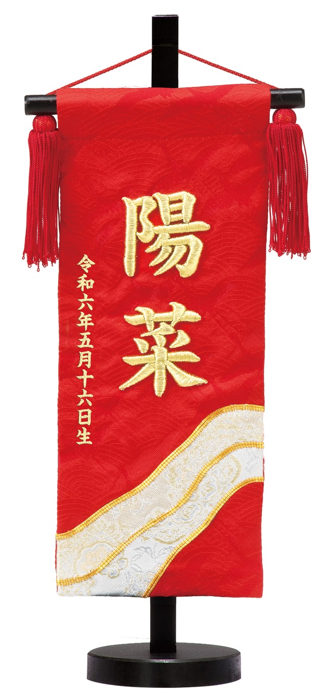 立体刺繍がとても綺麗な名前旗です。 【全体サイズ】W16×H40(㎝) ※購入者情報入力画面の備考欄に、お子様の「お名前」、「生年月日」を必ずご記入ください。 ※仕上がりまでに10~14日間程度かかります。