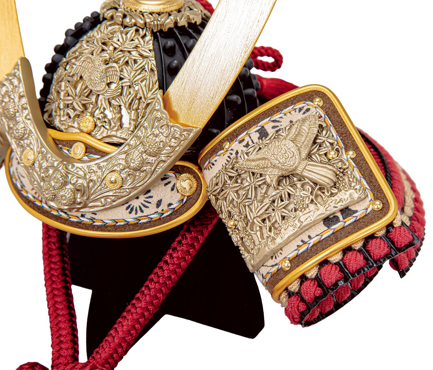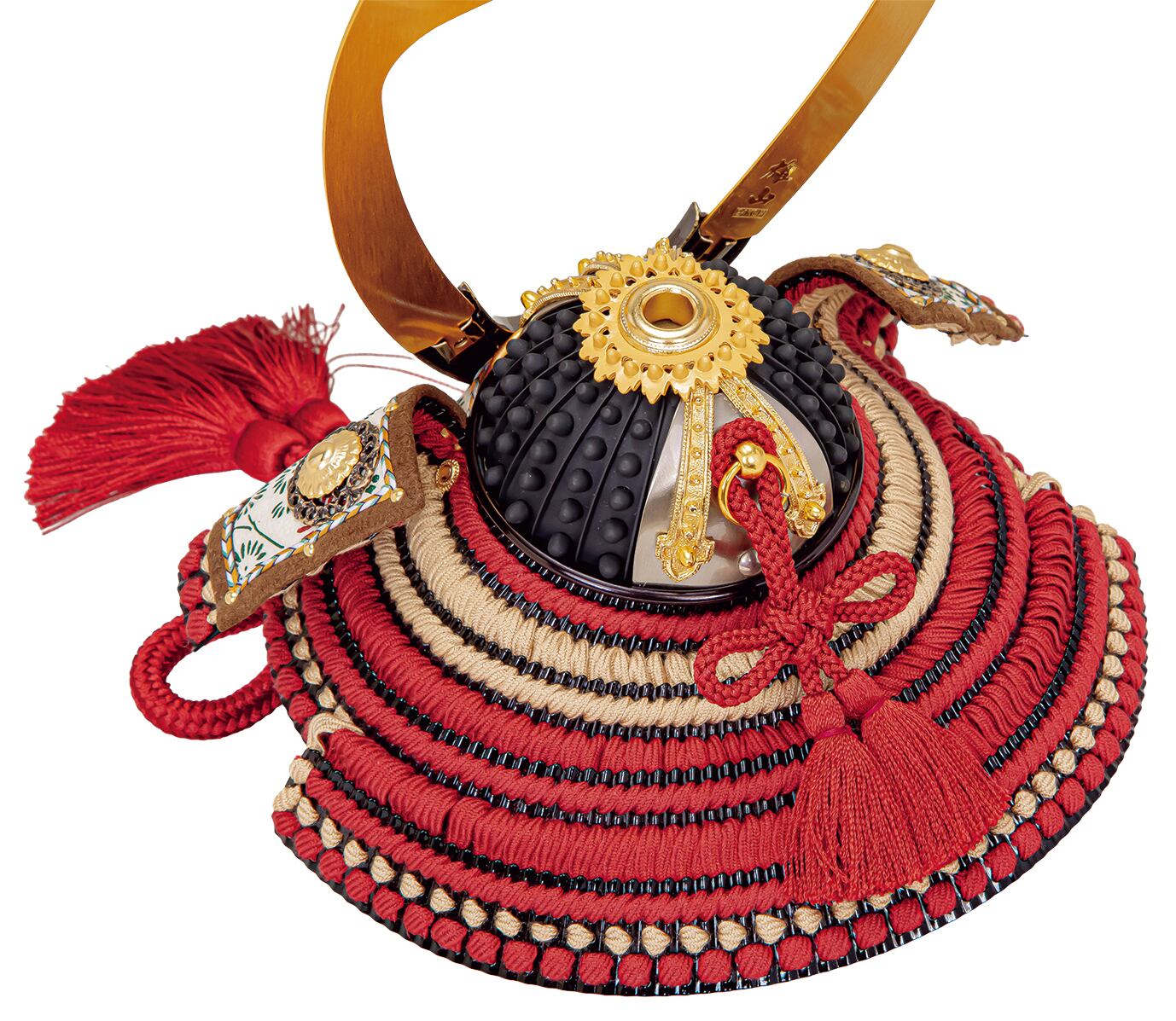 ほのかに光るまあるい灯りが綺麗な1/5真澄セットです。シャンパンゴールド色に仕上げた金物細工が魅力の兜には新色の鉄色と紅梅色の威し糸を合わせました。