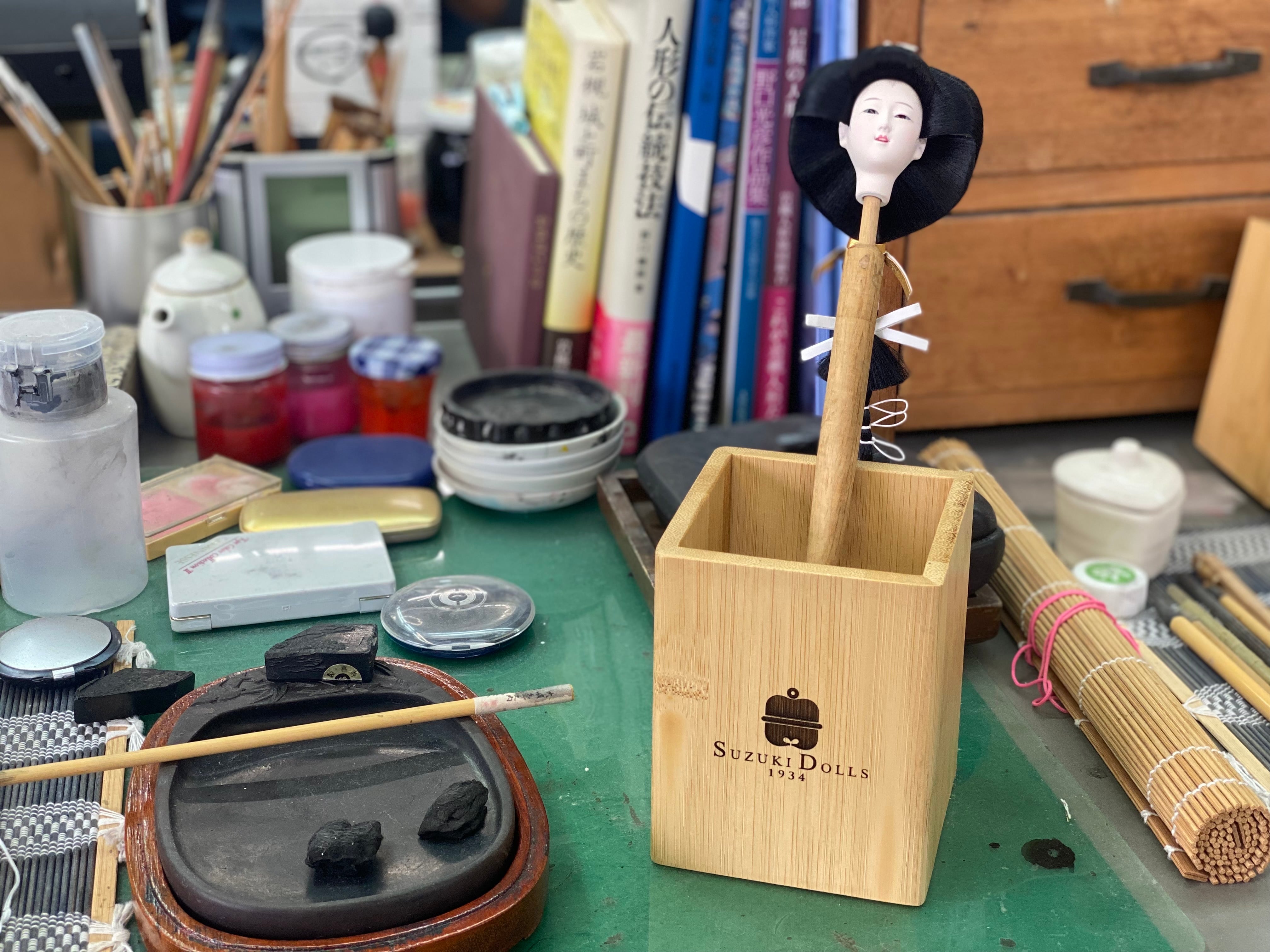 鈴木人形の頭師が使う筆立て(ロゴ刻印モデル)