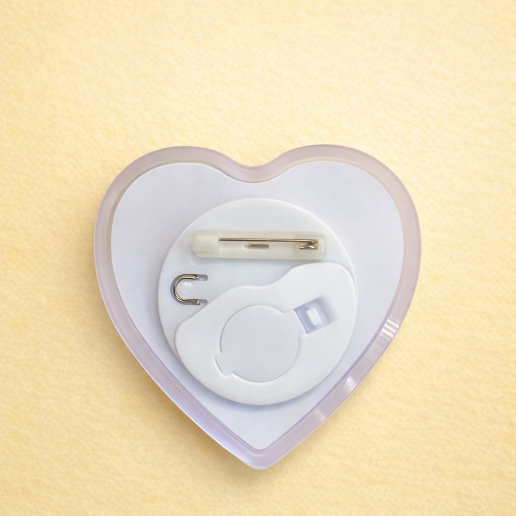 暗闇で光る、ハート型のライティングバッジ。光り方は3パターン。